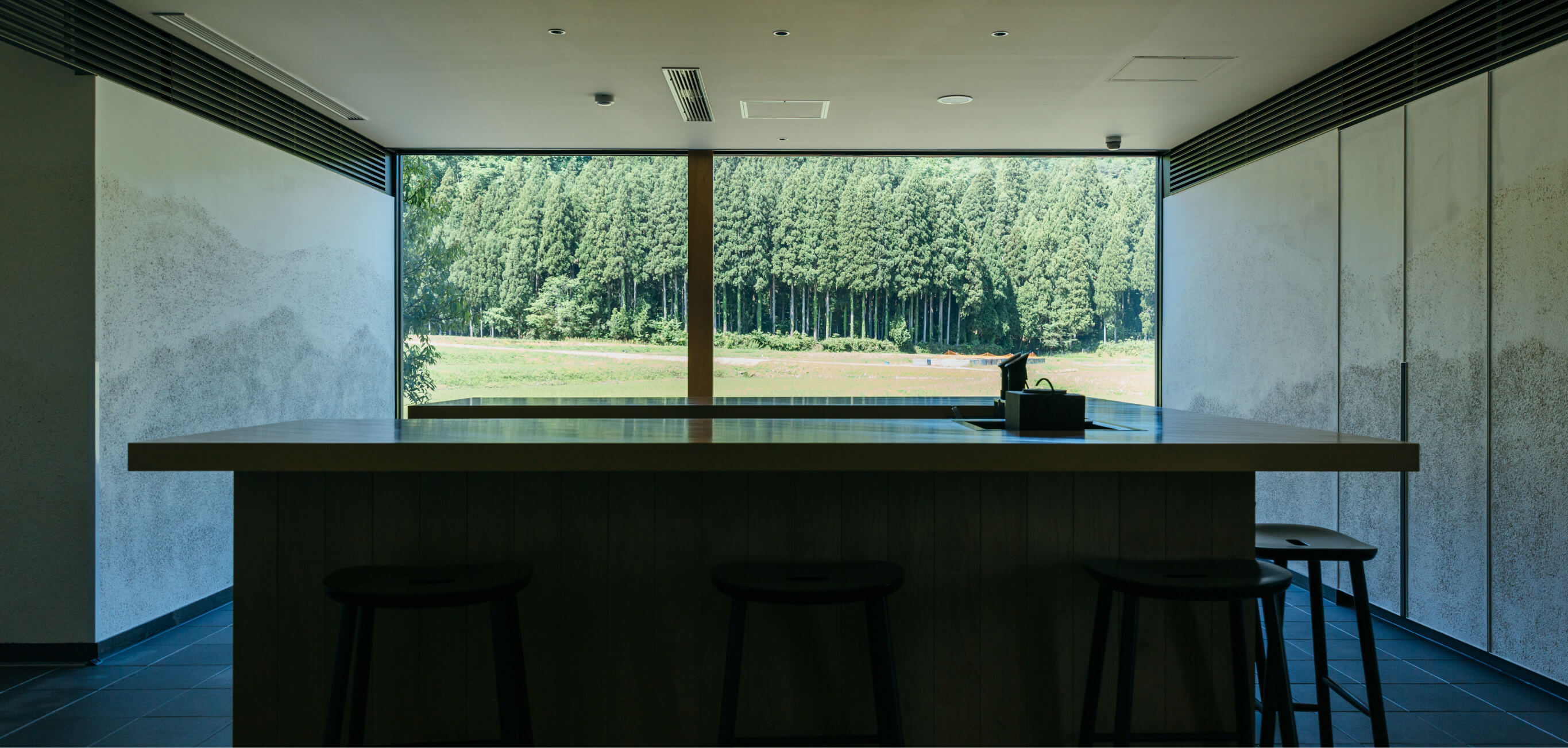 裏千家ゆかりの小松は、いにしえより茶の湯の文化が受け継がれています。四畳半のカウンター、漆喰の壁、窓の外の四季折々の景色、茶室をイメージした静かな空間で日本酒と食の新しい体験をお楽しみ頂けます。